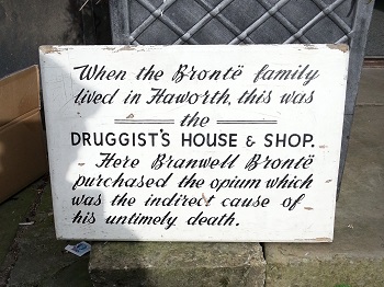 Back in the time of the Brontes this was the druggist's store where Branwell Bronte is believed to have purchased his laudanum, an opium based narcotic which was popular as a painkiller (and which was also used as a "recreational" drug too). This 1840s druggist's store was recreated recently (along with other buildings in the village) for the filming of a BBC drama called "To Walk Invisible" (pictured above).